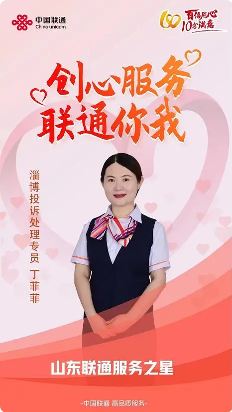 丁菲菲,淄博聯(lián)通客戶服務部投訴處理調度室值班長,愛崗敬業(yè)、無私奉獻的她,憑著扎實的專業(yè)知識和經(jīng)驗積累、靈活的溝通技巧以及充滿親和力的態(tài)度,帶領淄博聯(lián)通投訴調度室團隊屢次榮獲“淄博市青年文明號”“山東聯(lián)通巾幗文明崗”等榮譽稱號。2022年7月被評為“山東聯(lián)通服務之星”。