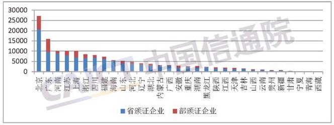 在117801家本地企業(yè)中,北京20708家,廣東9623家,河南9039,接下來依次是江蘇、浙江、上海,上述6地集中了全國51.83%的增值電信企業(yè),西部12省份的增值電信業(yè)務(wù)經(jīng)營者占全國的16.51%。