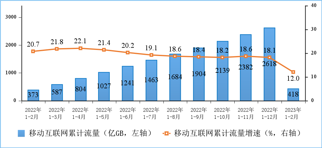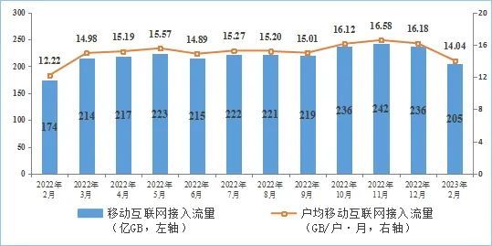 移動互聯(lián)網(wǎng)流量增速有所回落。1—2月份,移動互聯(lián)網(wǎng)累計流量達417.9億GB,同比增長12%,增速同比回落8.7個百分點。截至2月末,移動互聯(lián)網(wǎng)用戶數(shù)達14.68億戶,比上年末凈增1422萬戶。2月當(dāng)月戶均移動互聯(lián)網(wǎng)接入流量(DOU)為14.04GB/戶·月,同比增長14.8%,但較上年12月份低2.14GB/戶·月。