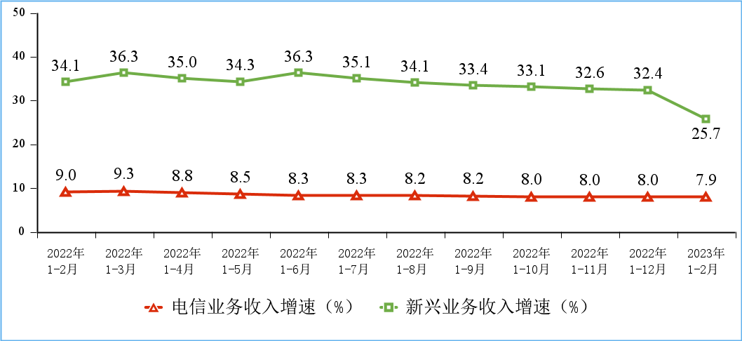 圖1 電信業(yè)務(wù)收入和電信業(yè)務(wù)總量累計增速