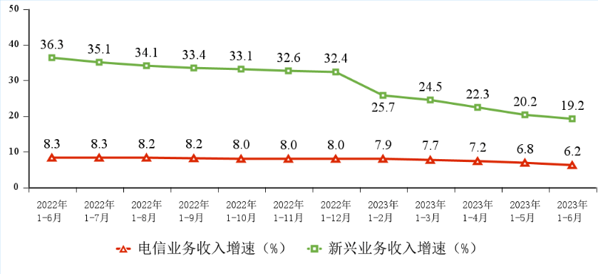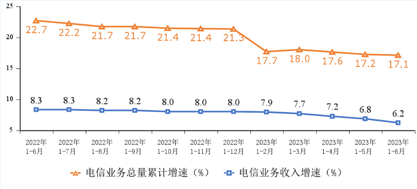電信業(yè)務(wù)收入和電信業(yè)務(wù)總量累計增速(圖源工信微報公眾號,下同)