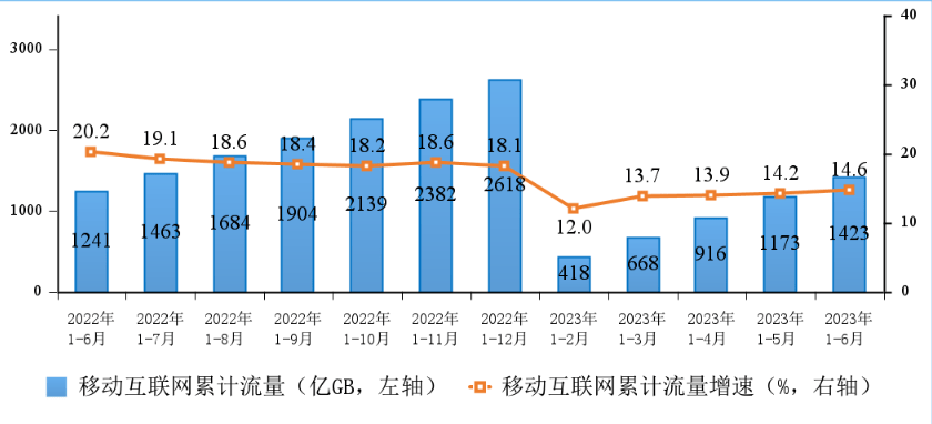 移動互聯(lián)網(wǎng)累計接入流量及增速情況