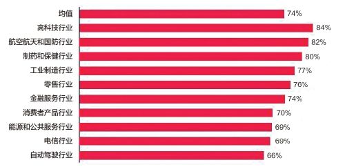 在凱捷的調(diào)查中,電信行業(yè)對人工智能風(fēng)險(xiǎn)的整體承受能力低于74%的平均水平。84%的高科技公司認(rèn)為,盡管存在潛在不利因素,但仍值得推進(jìn)人工智能的發(fā)展,這可能是因?yàn)楦呖萍脊臼侨斯ぶ悄馨l(fā)展的引領(lǐng)者。