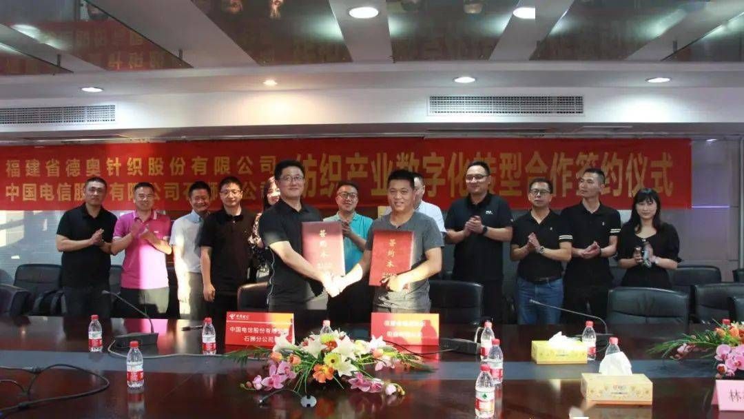 圖為中國電信石獅分公司與德奧針織簽約數(shù)字化轉(zhuǎn)型合作協(xié)議