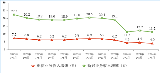 南山)工業(yè)和信息化部運行監(jiān)測協(xié)調(diào)局今日發(fā)布了《2024年1—4月份通信業(yè)經(jīng)濟運行情況》。