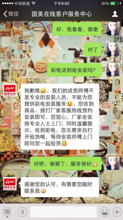 值得注意的是,針對(duì)訴求目前國美在線微信客服不僅有智能機(jī)器快速提供解決方案,還有一對(duì)一人工客服更精準(zhǔn)的提供服務(wù)。消費(fèi)者聯(lián)系人工客服,只需進(jìn)入微信公眾號(hào)回復(fù)“KF”二字即可。每天9:00-18:00期間,消費(fèi)者隨時(shí)可聯(lián)系客服受理商品咨詢、購物幫助、訂單服務(wù)、售后幫助等,通過上行、下行短信的方式進(jìn)行交互快速響應(yīng)為用戶提供便利。目前,國美在線微信客服平臺(tái)正處于試運(yùn)營階段,智能客服功能將在使用中不斷進(jìn)行完善,聊天功能未來將不斷優(yōu)化,給消費(fèi)者帶來更多網(wǎng)購樂趣。