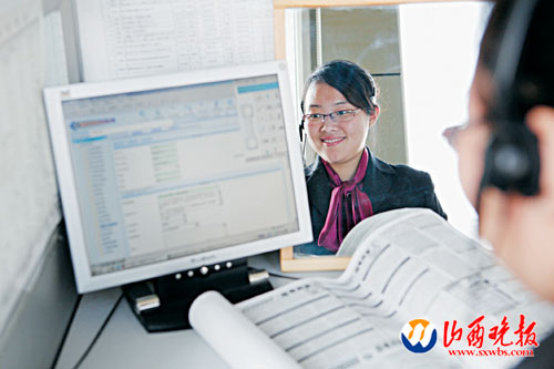 座席人員微笑上崗本報(bào)記者馬立明攝