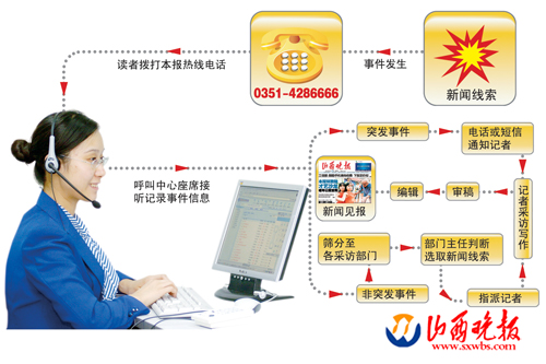 4286666首先是一條突發(fā)新聞熱線。自這條新聞熱線開通以來,廣大讀者的有獎(jiǎng)報(bào)料,火災(zāi)、車禍、坍塌、暴雨暴雪后的事故,往往一件突發(fā)事件發(fā)生之后,通常不到3分鐘就會(huì)有讀者把電話打到呼叫平臺(tái),重大公共事件通常會(huì)有數(shù)十名讀者的電話涌入。2007年12月15日迎澤南街地下管道爆炸,事件發(fā)生一分鐘,平臺(tái)接到報(bào)料,5分鐘后,記者到達(dá)現(xiàn)場(chǎng)。這樣的速度不勝枚舉,5年來,本省重大的突發(fā)事件幾乎都可以在呼叫平臺(tái)找到記錄。