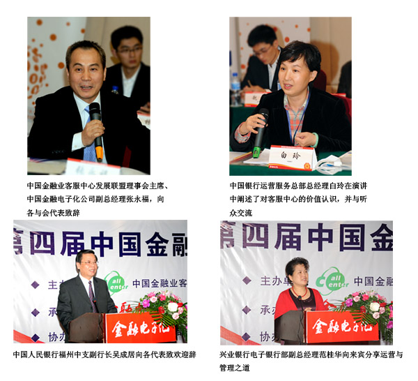 大會(huì)得到了中國(guó)人民銀行福州中心支行及興業(yè)銀行的大力支持。福州中支副行長(zhǎng)吳成居參加會(huì)議并致歡迎辭,希望各客服中心取長(zhǎng)補(bǔ)短,共同推動(dòng)金融業(yè)發(fā)展。中國(guó)金融業(yè)客服中心發(fā)展聯(lián)盟理事會(huì)主席、中國(guó)金融電子化公司副總經(jīng)理張永福在致辭中指出,2011年是我國(guó)“十二五”開(kāi)局之年,也將是我國(guó)深入金融改革的新起點(diǎn),站在這一新的歷史機(jī)遇面前,需要廣大金融業(yè)客服中心同人,準(zhǔn)確把握客服中心在金融業(yè)改革與轉(zhuǎn)型中的定位,用先進(jìn)的技術(shù)和運(yùn)營(yíng)理念武裝自己,加快經(jīng)營(yíng)管理模式的轉(zhuǎn)變和發(fā)展步伐。
