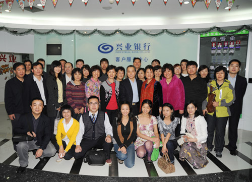 與會(huì)代表參觀興業(yè)銀行客服中心,并合影留念