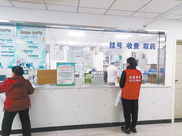 清源街道智慧化養(yǎng)老服務(wù)中心的工作人員幫助老人買藥。
