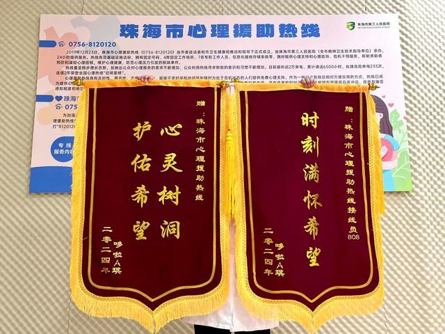 近日,珠海市心理救援熱線收到兩面意義非凡的錦旗。一面錦旗上繡著“心靈樹洞,護佑希望”,這是對全體接線員的贊譽和感謝,是他們用溫暖的話語和耐心的傾聽,為來電者提供了心靈的慰藉。另一面錦旗則寫著“時刻滿懷希望”,這是對小文(化名)這位接線員個人的特別感謝,感激她一路陪伴與支持,為求助者點亮了生命之路。這兩面錦旗背后,隱藏著一個跨越3年的感人故事。