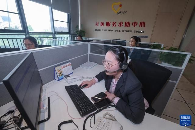 6月7日,在嘉興市96345社區(qū)服務(wù)求助中心,工作人員在接聽(tīng)熱線電話。