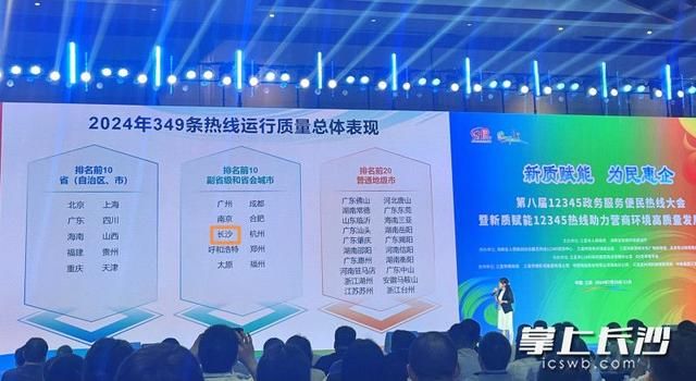 10日,第八屆全國12345政務(wù)服務(wù)便民熱線大會暨新質(zhì)賦能12345熱線助力營商環(huán)境高質(zhì)量發(fā)展大會在海南三亞召開,會上發(fā)布了2024年全國12345熱線運行質(zhì)量監(jiān)測評估報告,該報告對全國349個地市級城市進行質(zhì)量評估。在副省級城市、計劃單列市、省會城市12345熱線運行質(zhì)量排行榜上,長沙位列第五。
