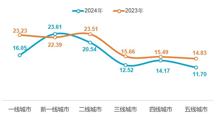 附圖:2023-2024年各級(jí)別城市12345熱線接通時(shí)長(zhǎng)表現(xiàn)