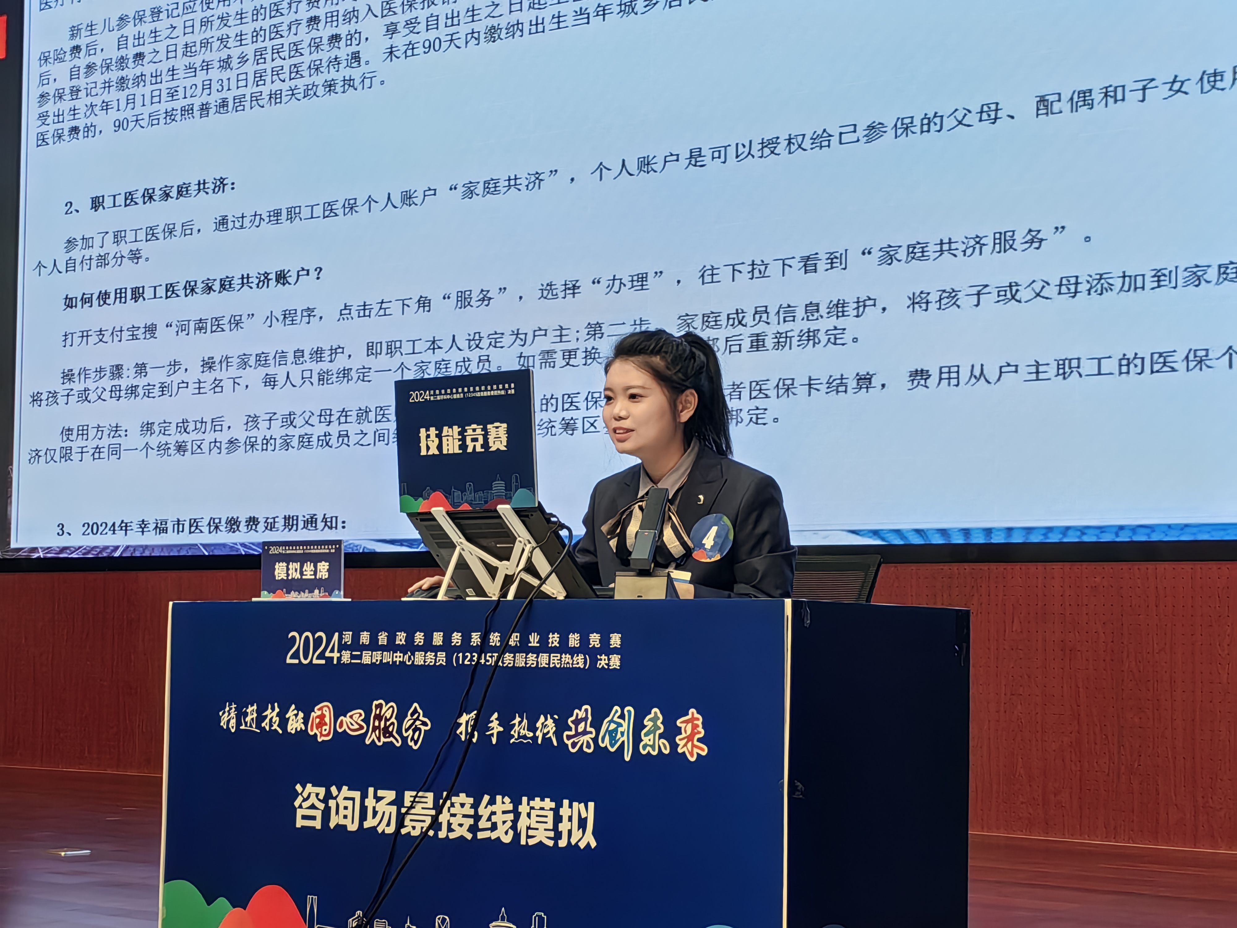 在12345熱線職業(yè)技能競賽決賽現(xiàn)場,“我想開個(gè)小吃店,不知道怎么辦食品經(jīng)營許可證”“新生兒父母怎么為寶寶辦理出生證明?”“再有一個(gè)月就該退休了,可以提前辦理退休手續(xù)嗎”,這些和群眾、企業(yè)息息相關(guān)的政務(wù)服務(wù)事項(xiàng)變成一道道考題,重點(diǎn)考查12345熱線話務(wù)員對(duì)國家“高效辦成一件事”政策的理解能力以及相關(guān)的問題解決能力、溝通協(xié)調(diào)能力、系統(tǒng)操作能力,考查內(nèi)容更多元、考試形式更多樣,競賽更加貼近實(shí)戰(zhàn)。