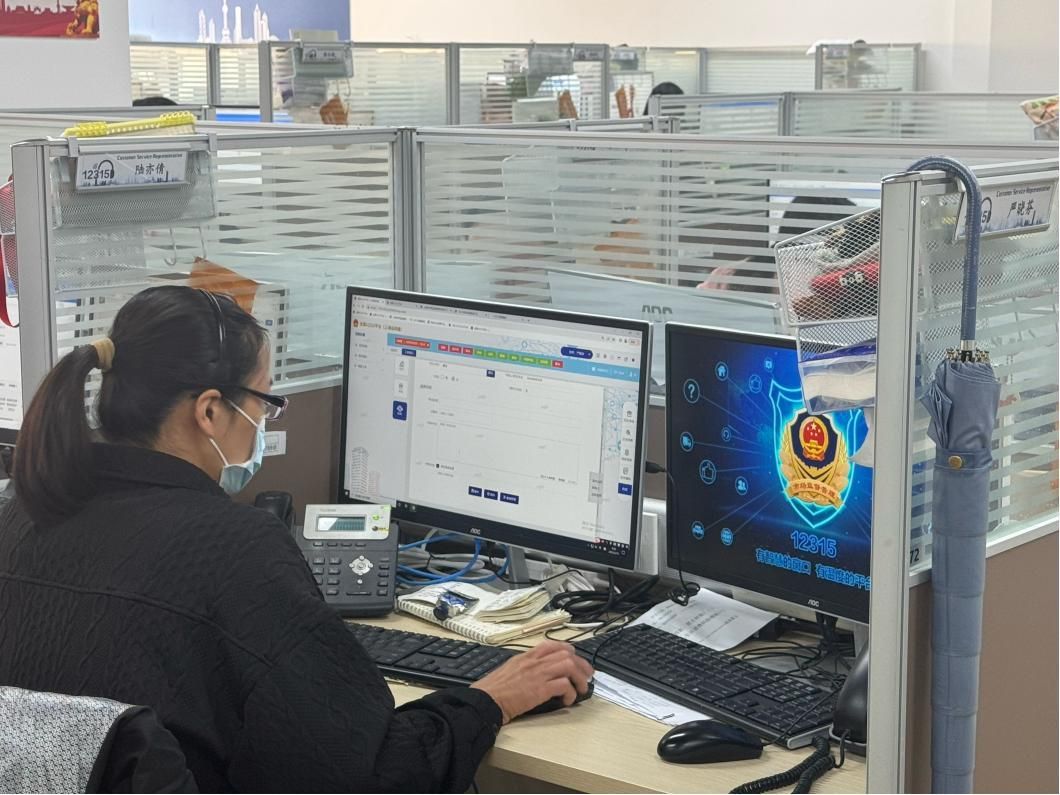 上海12315熱線平?jīng)雎方勇狘c(diǎn)內(nèi),電話振鈴的潮涌與鍵盤躍動(dòng)的節(jié)拍,交織成一幅緊張忙碌的圖景。