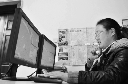 ▲東陽(yáng)出租車呼叫中心調(diào)度員韓欣在接聽電話,調(diào)度車輛。