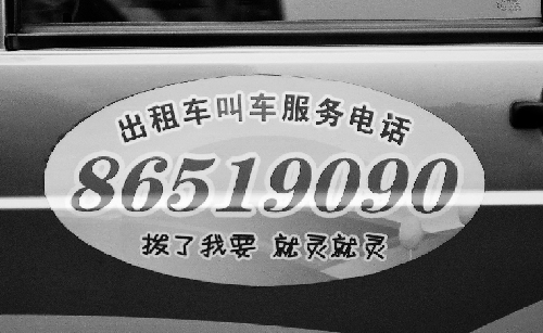 ▲東陽(yáng)出租車門上印著叫車電話號(hào)碼。