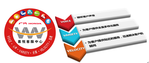 廣汽本田客服中心致力的服務(wù)理念是“3V服務(wù)(Voice Variety Velocity)”以客戶為中心,站在客戶角度迅速高效解決客戶的問題,并為公司營銷策略提供有力的支持,展望打造全國汽車行業(yè)中最專業(yè)的客戶聯(lián)絡(luò)中心。