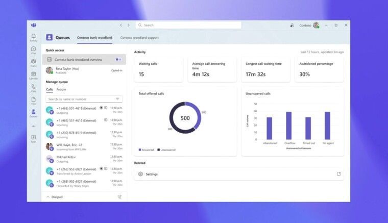 IT之家援引微軟新聞稿,Queues 應用提供實時數據,幫助客服監(jiān)控等待中的通話數量、客戶的平均等待時間以及在未接通前結束通話的客戶數量等信息。
