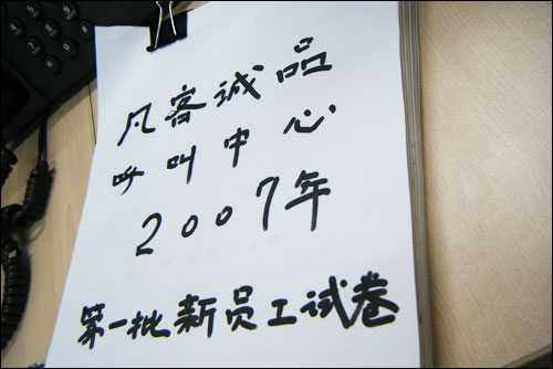 通過(guò)了面試就要來(lái)參加培訓(xùn)嘍~~這是在呼叫中心工作開(kāi)始的第一步。瞧,培訓(xùn)教室上的門牌很有“氣派”吧。除了“清華在培”、“北大在培”,同期還有“斯坦福在培”、“牛津在培訓(xùn)”……