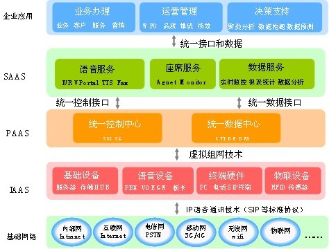 做為一家專業(yè)立足于聯(lián)絡(luò)中心領(lǐng)域內(nèi)的原廠商,英立訊科技對“云”技術(shù)的應(yīng)用也有很多自身的實踐和體會,英立訊認(rèn)為:在聯(lián)絡(luò)中心領(lǐng)域內(nèi),最終解決用戶實際問題的應(yīng)該是SaaS,但SaaS并不是孤立存在的,它需要良好的PaaS層綜合能力的支撐。對于聯(lián)絡(luò)中心而言,在PaaS層主要體現(xiàn)的是控制和數(shù)據(jù)處理,所以基于軟交換架構(gòu)的統(tǒng)一控制和在統(tǒng)一邏輯下的統(tǒng)一數(shù)據(jù)處理能力是PaaS層需要處理的主要工作。英立訊科技認(rèn)為作為專業(yè)化的聯(lián)絡(luò)中心領(lǐng)域內(nèi)的原廠商,均應(yīng)該在PaaS層強(qiáng)化自身的平臺能力,以便更好的對在SaaS層開展的各種應(yīng)用需要面臨的調(diào)整做足夠的支撐。平臺能力的加強(qiáng)局部僅僅局限在容量和穩(wěn)定性方面,更應(yīng)該考慮的是基于異構(gòu)的面向多業(yè)務(wù)的融合能力,包括面向新技術(shù)的功能開發(fā),例如物聯(lián)網(wǎng)技術(shù)的融合。
