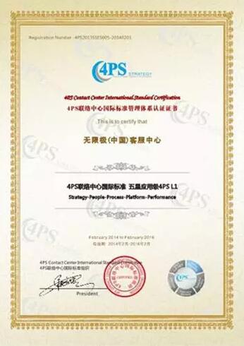 4PS國(guó)際標(biāo)準(zhǔn)/中國(guó)呼叫中心與BPO產(chǎn)業(yè)聯(lián)盟主席顏曉濱說(shuō):“一次性通過(guò)4PS國(guó)際標(biāo)準(zhǔn)認(rèn)證,說(shuō)明無(wú)限極(中國(guó))客服中心與全球權(quán)威管理體系已正式接軌。好產(chǎn)品,好服務(wù),祝賀無(wú)限極(中國(guó))有限公司。”