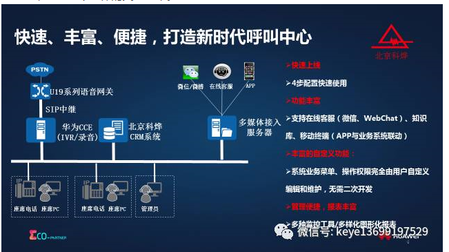 基于這種集成的CCE設(shè)備解決方案,科燁也推出了配套的呼叫中心CRM軟件。2017將于3月9日至10日在湖南長沙國際會(huì)展中心華為中國生態(tài)伙伴大會(huì)將隆重召開,科燁有幸在此此大會(huì)展示CCE+科燁CRM產(chǎn)品整體解決方案。