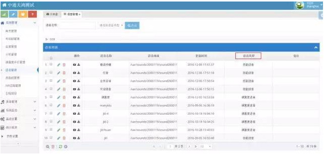 中通天鴻呼叫中心系統(tǒng),語(yǔ)音管理功能,可以根據(jù)不同類別對(duì)語(yǔ)音信息進(jìn)行分類操作,基礎(chǔ)語(yǔ)音管理的類型有:技能語(yǔ)音、滿意度語(yǔ)音、白名單語(yǔ)音、按鍵語(yǔ)音、留言語(yǔ)音、其他等。