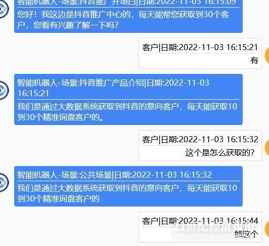 圖說:某企業(yè)使用AI電話機器人給21記者打了一個體驗電話,隨后將對話以文字的形式反饋,但通話過程中并未將此步驟告知21記者。