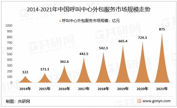 呼叫中心外包,是服務(wù)領(lǐng)域的一項(xiàng)外包業(yè)務(wù),即企業(yè)委托第三方全面管理或部分管理呼叫中心的業(yè)務(wù)。2014年以來(lái),我國(guó)呼叫中心外包服務(wù)市場(chǎng)規(guī)模不斷增長(zhǎng),2020年我國(guó)呼叫中心外包服務(wù)市場(chǎng)規(guī)模達(dá)到724.3億元,2021年約為875億元左右。
