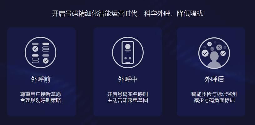 企業(yè)在拓展業(yè)務(wù)時往往陷入高外呼、高騷擾、高標(biāo)記、高投訴、高拒接的惡性循環(huán)中。為了解決這道難題,電話邦依托自身技術(shù)能力和多年業(yè)務(wù)實(shí)踐,提出“號碼精細(xì)化智能運(yùn)營解決方案”,覆蓋外呼前,外呼中,外呼后全場景,協(xié)助企業(yè)降低騷擾電話,保障合規(guī)穩(wěn)定運(yùn)營。