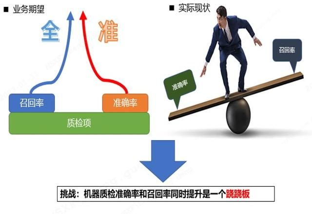 為突破人工質(zhì)檢困局,馬上消費金融股份有限公司(簡稱:馬上消費)率先引入智能質(zhì)檢系統(tǒng)。以實現(xiàn)覆蓋率100%,召回率(Recall, 也稱作“查全率”)和準確率(Precision, 也稱作“查準率”)雙目標均達到80%為理想目標,馬上消費的研發(fā)團隊展開了長達兩年的不懈探索。然而,模型反復迭代,但雙目標的驗證結(jié)果仍差強人意,總和僅在40%-70%之間徘徊,似乎難以逾越。技術(shù)自身的局限性以及召回率與準確率之間的相互制約使得系統(tǒng)的表現(xiàn)仍與期望存在較大差距。主要原因包含四個方面: