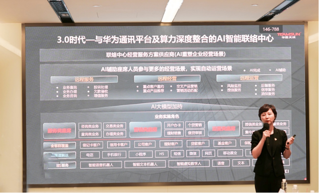 在1.0階段,國內(nèi)呼叫中心平臺經(jīng)歷了西方品牌的輸出過程,在此期間,華勝天成為上百家金融客戶搭建了呼叫中心的基礎(chǔ)架構(gòu)。隨著國產(chǎn)化和智能化的推進,我們正式進入了2.0智能客服中心階段,在這一過程中,華勝天成全面擁抱華為,在語音機器人、文本機器人、坐席輔助、智能助手等方面投入了大量研發(fā)資源,并于今年與華為聯(lián)合發(fā)布了GBI自動報表生成系統(tǒng),為客戶帶來了更多場景化的智能解決方案。近兩年來,隨著大模型技術(shù)的崛起,華勝天成攜手華為正式邁入3.0階段,即AI智能聯(lián)絡(luò)中心時代,這一階段不僅帶來了新的挑戰(zhàn),更開啟了攜手共創(chuàng)的新時代。客戶服務(wù)已從單純的服務(wù)拓展至營銷,并進一步演變?yōu)闃I(yè)務(wù)經(jīng)營。企業(yè)不僅要面對組織結(jié)構(gòu)和業(yè)務(wù)流程的重塑,還需應(yīng)對從底層算力到大模型、算法、數(shù)據(jù)、場景等多維度需求的變化,這個階段充滿了無限可能,為行業(yè)帶來了前所未有的創(chuàng)新與想象空間。