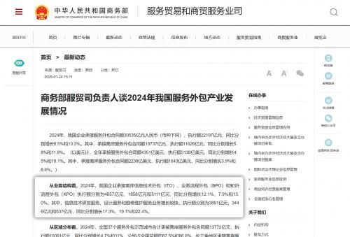 圖1:商務(wù)部官網(wǎng)發(fā)布2024年我國服務(wù)外包產(chǎn)業(yè)發(fā)展情況