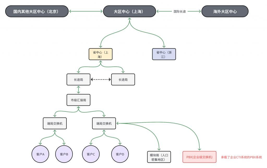 PBX 一般不會只接一家電話運(yùn)營商,對同一家電話運(yùn)營商針對于電話線路用途不同,一般也會申請多條中繼線線路。需要選擇哪條中繼線路進(jìn)行外呼,需要運(yùn)營商和企業(yè)約定,一般我們是通過中繼號碼進(jìn)行區(qū)分。值得一提的是,用戶側(cè)真實(shí)展示的號碼和中繼號碼很多時候是不一樣的。