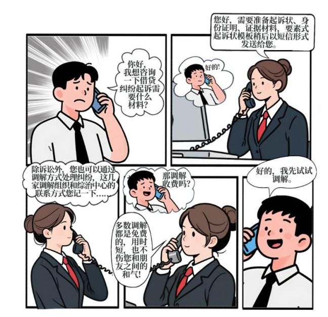 “有朋友借我錢一直不還,應(yīng)該怎么起訴?”早上剛上班,我就接到一位自稱李先生的人來(lái)電。我耐心給他答復(fù),“您好,先生,起訴的話需要準(zhǔn)備起訴狀……要素式模板稍后以短信形式發(fā)送給您。除訴訟外,您也可以通過(guò)調(diào)解方式處理糾紛,對(duì)于民間借貸糾紛,我們提供幾家調(diào)解組織給您,聯(lián)系方式您可以記一下,此外您也可以選擇就近的綜治中心進(jìn)行調(diào)解。”李先生很感興趣,在了解到綜治中心和多數(shù)的調(diào)解組織都是免費(fèi)進(jìn)行調(diào)解時(shí),欣然前往附近的綜治中心申請(qǐng)了調(diào)解。通常來(lái)說(shuō),調(diào)解比訴訟的用時(shí)更少,也不傷害朋友之間的和氣,希望他能和朋友和好如初。