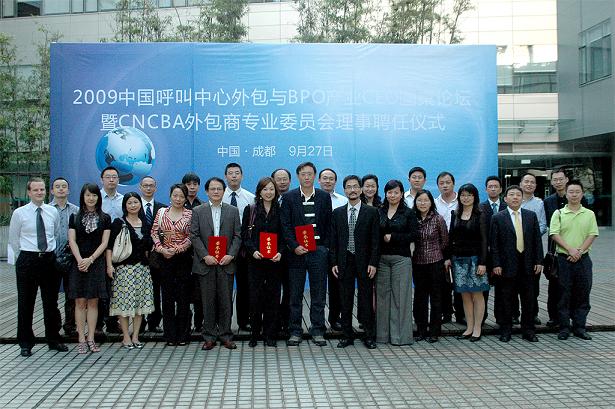 期間中國呼叫中心與BPO產(chǎn)業(yè)聯(lián)盟(CNCBA)召集全國的呼叫中心與BPO外包商的CEO與行業(yè)領袖,對中國外包行業(yè)進行了深入的研討與展望,并舉行了隆重的CNCBA外包商專業(yè)委員會理事聘任儀式,來自九五太維總裁李寶民博士、益峰(VCS)董事長宋健名董事長、維音數(shù)碼總裁劉千里博士正式受聘為CNCBA外包商專業(yè)委員會理事,CNCBA主席顏曉濱親自為新聘理事頒發(fā)證書。