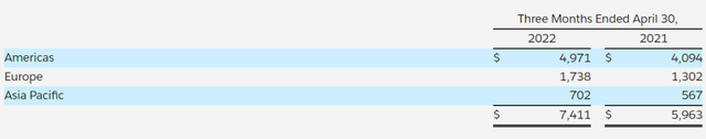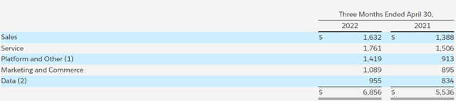 最新財報顯示,截至2022年4月30日的2023財年第一季度,Salesforce業(yè)務(wù)收入為74.1億美元,同比增長24%,業(yè)績增長強勁。