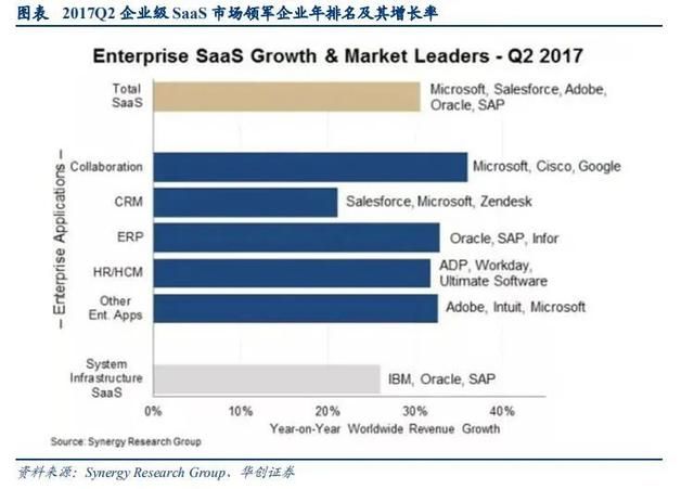 Salesforce 在 SaaS 領(lǐng)域排名第二,CRM 細(xì)分領(lǐng)域排名第一。根據(jù)市場研究機構(gòu) Synergy Research 的統(tǒng)計,微軟在SaaS 服務(wù)供應(yīng)商中排名第一,Salesforce 位居第二,Adobe、甲骨文和 SAP 并列第三。其中,在 CRM 這一細(xì)分領(lǐng)域,Salesforce 穩(wěn)居霸主地位。