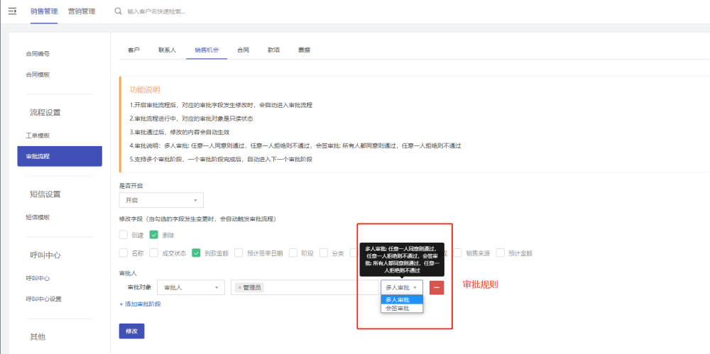 企客寶SCRM的審批流程非常靈活,支持自定義審批流程,并且能覆蓋系統(tǒng)內的主要功能,審批請求和審批結果都可以快速有效地傳達給相關人員。企客寶SCRM的審批可以針對不同業(yè)務創(chuàng)建審批流程,比如對客戶、聯(lián)系人、銷售機會、合同、款項或票據(jù)等實體創(chuàng)建相應的審批流程。同時可以根據(jù)不同的維度來進行查看和篩選審批數(shù)據(jù),規(guī)范的審批流程避免企業(yè)因層層上報而出現(xiàn)一些小差錯,效率也更高。