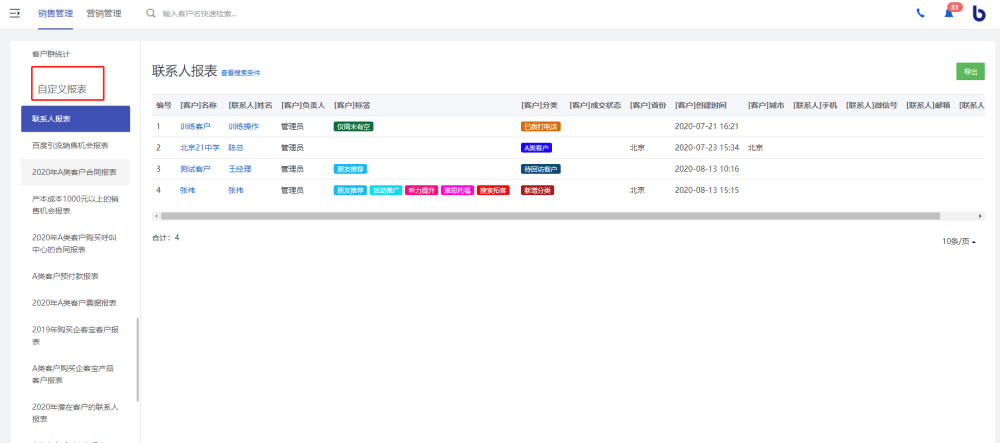 并且,企客寶SCRM還支持自定義報表,這是數(shù)據(jù)的另一種呈現(xiàn)方式,企業(yè)業(yè)務人員可以自由設置數(shù)據(jù)的查詢條件、報表的顯示形式,也就是說企業(yè)需要什么樣的數(shù)據(jù)和報表,就可以自己動手DIY編輯報表條件和報表,滿足企業(yè)個性化需求。