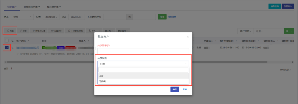 同時,企客寶SCRM系統(tǒng)支持將客戶進行共享,且可以設置共享權限-只讀權限和可編輯權限,這樣營銷部門可以通過詳細數(shù)據(jù)制定更完善的營銷策略,客服部門可以對客戶完成更好的維護等等,真正做到業(yè)務對接自動流轉和數(shù)據(jù)互聯(lián)。