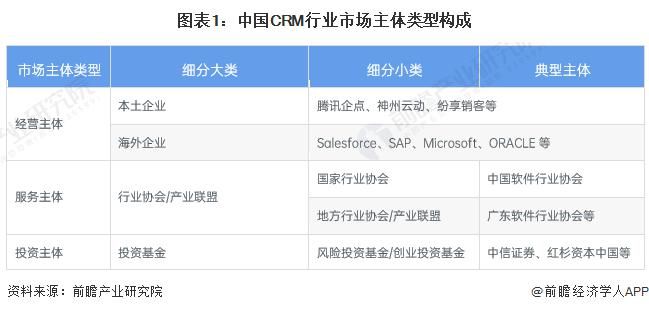 中國 CRM 行業(yè)市場主體主要分為投資主體、經(jīng)營主體、服務主體三大類,行業(yè)市場主體構(gòu)成如下: