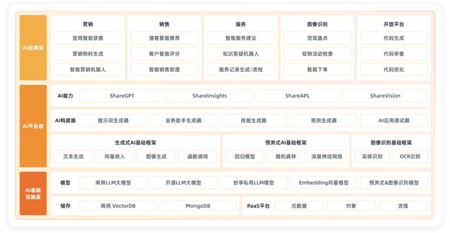 ? AI平臺層,是紛享架構(gòu)的核心部分,提供生成式AI、預(yù)測性AI、圖像識別等多種AI能力,以及各種構(gòu)建和部署工具。