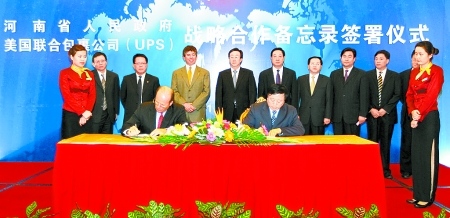 8月23日,河南省人民政府與美國聯(lián)合包裹公司(UPS)戰(zhàn)略合作備忘錄簽署儀式在鄭州舉行。記者 董亮 攝