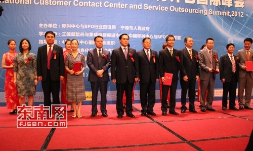東南網寧德9月21日訊(本網記者 陳婷 阮麗云)2012年度中國客戶聯(lián)絡中心服務與服務外包國際峰會在寧德市盛大開幕,中共寧德市市委書記廖小軍、寧德市市長鄭新聰及相關領導與BPO行業(yè)資訊網執(zhí)行總裁唐愛琴等企業(yè)代表參加峰會。