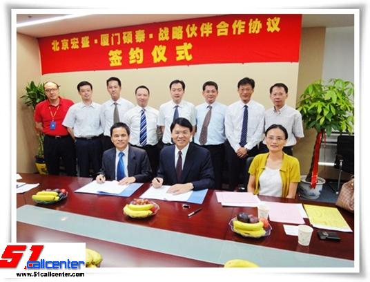 51Callcenter9月8日報道:據(jù)悉,北京宏盛高新技術有限公司與廈門碩泰商務科技有限公司正式攜手合作,於2010/8/25簽訂戰(zhàn)略夥伴合作協(xié)定書,共同承諾提供企業(yè)客戶更完善的商業(yè)服務--呼叫中心建置、呼叫中心外包、服務外包與平臺租用等業(yè)務。