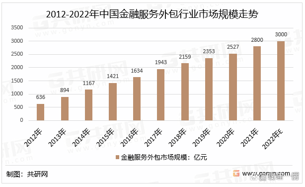 2012-2022年中國金融服務外包行業(yè)市場規(guī)模走勢